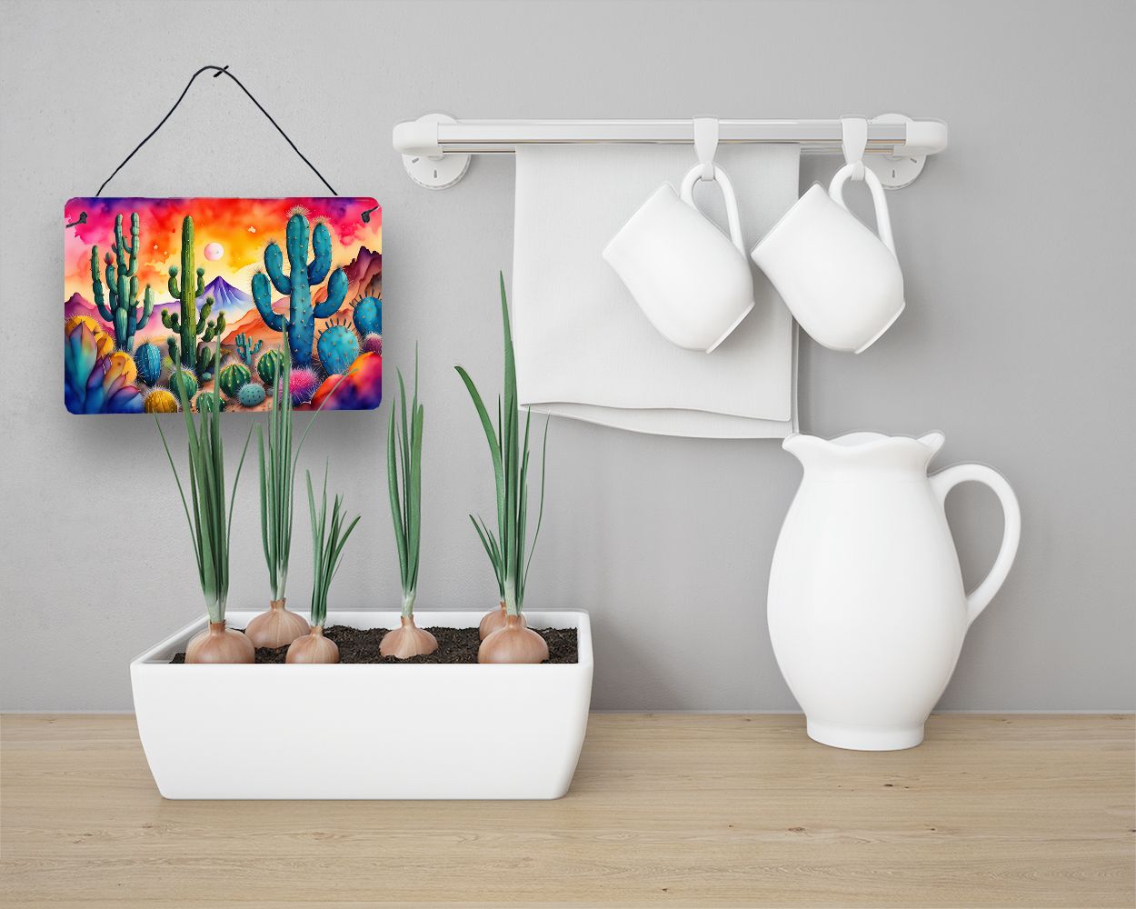 NEW Cactus in Color Wall or Door Hanging Prints Aluminum Metal Sign Kitchen Wall Bar Bathroom Plaque Home Decor, 8HX12W, Multicolor
