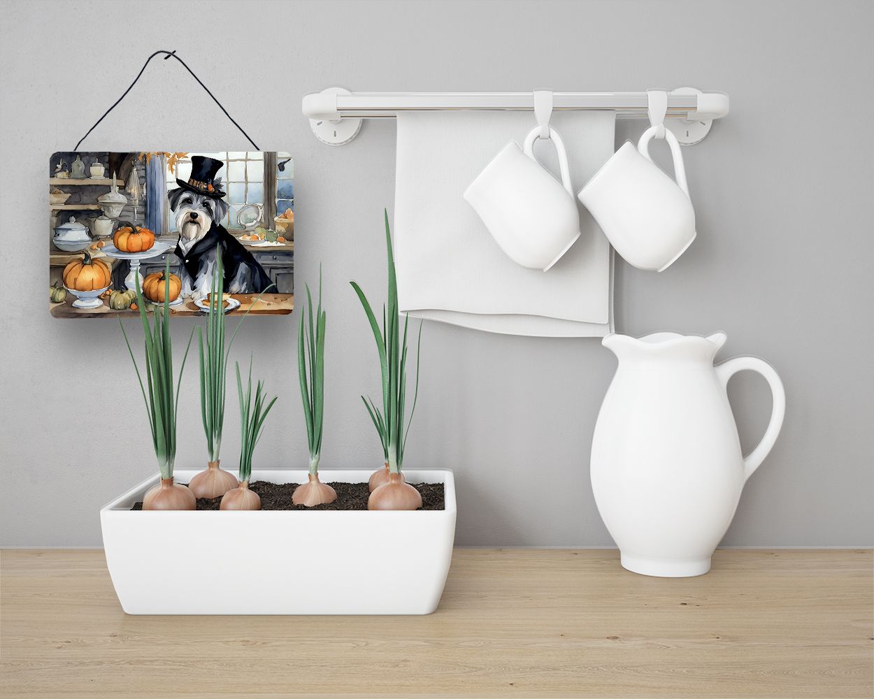 NEW Schnauzer Fall Kitchen Pumpkins Wall or Door Hanging Prints Aluminum Metal Sign Kitchen Wall Bar Bathroom Plaque Home Decor, 8HX12W, Multicolor