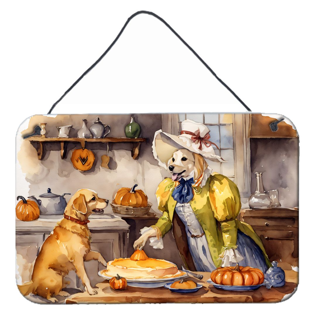 NEW Yellow Lab Fall Kitchen Pumpkins Wall or Door Hanging Prints Aluminum Metal Sign Kitchen Wall Bar Bathroom Plaque Home Decor, 8HX12W, Multicolor