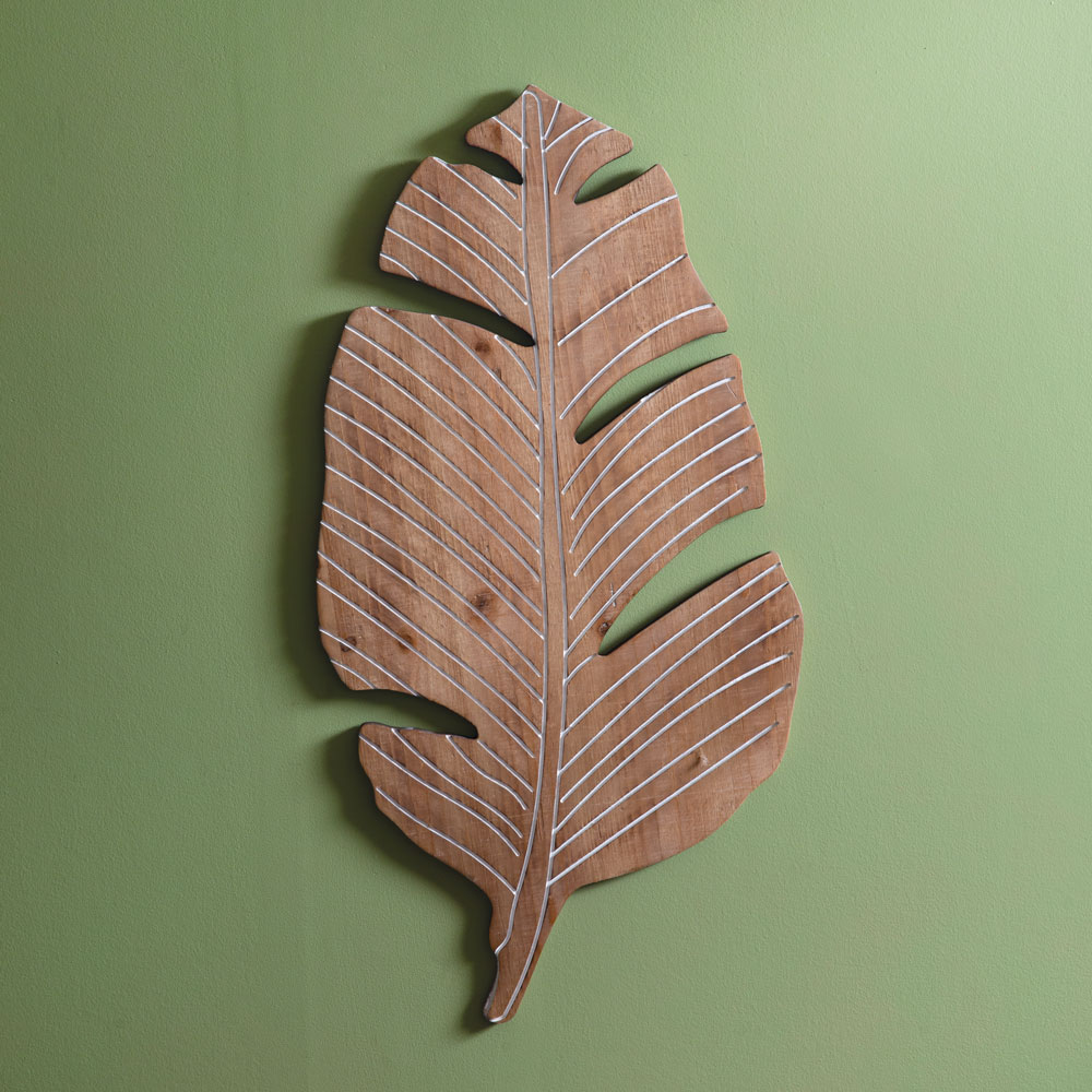 Bring the islands to your home with this tropical leaf wall decor. This wooden carving is simplistic and nature-inspired. To hang, use its triangle hanger.