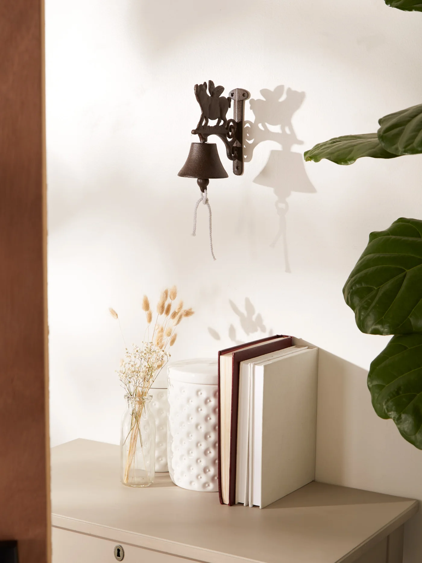 Hang this decorative cast iron dinner bell anywhere for a pop of fun and function. This beautiful cast iron outdoor decor will become a favorite piece that will last for years to come.